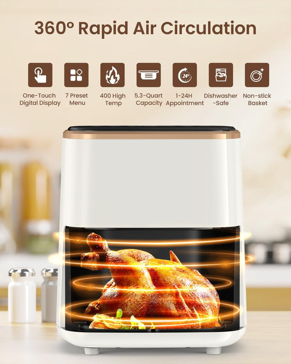 DEVITCO 5.3Qt Air Fryer - Enjoy Healthy Cooking with Visual Window, 7 Presets, Non-Stick Basket, and Accessories for Effortless, Delicious Meals