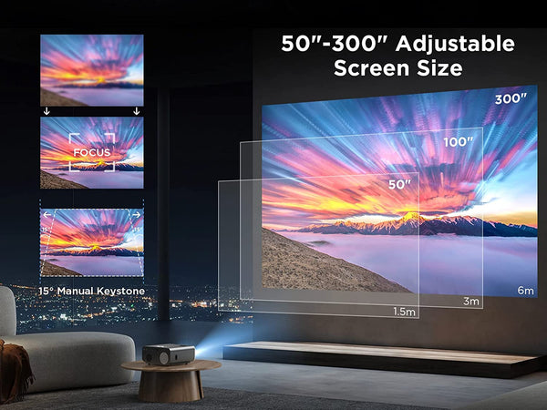- 300" Giant Screen & 75% Zoom: Adjustable projection size for versatile viewing, with zoom function for optimal display.