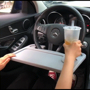 This is a Very Handy Steering Wheel Tray when you need to sit and take notes or stop on the side of the road for a sandwich without having to get out of the car or make a mess.