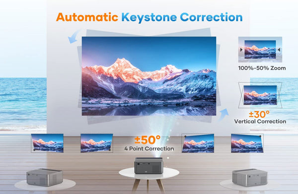 Auto Vertical Correction & Keystone Correction: Automatically correct vertical distortion by ±30° with the Auto Trapezoid setting, while the 4P and 6D Keystone correction allows precise alignment for optimal viewing.