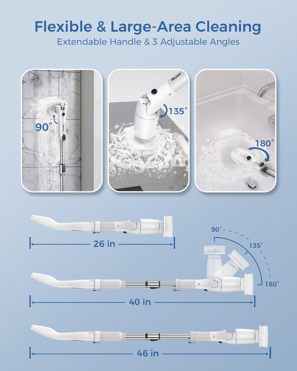 VEWIOR Cordless Electric Spin Scrubber: Effortless Cleaning, Adjustable Handle, 2 Speeds, 5 Brushes